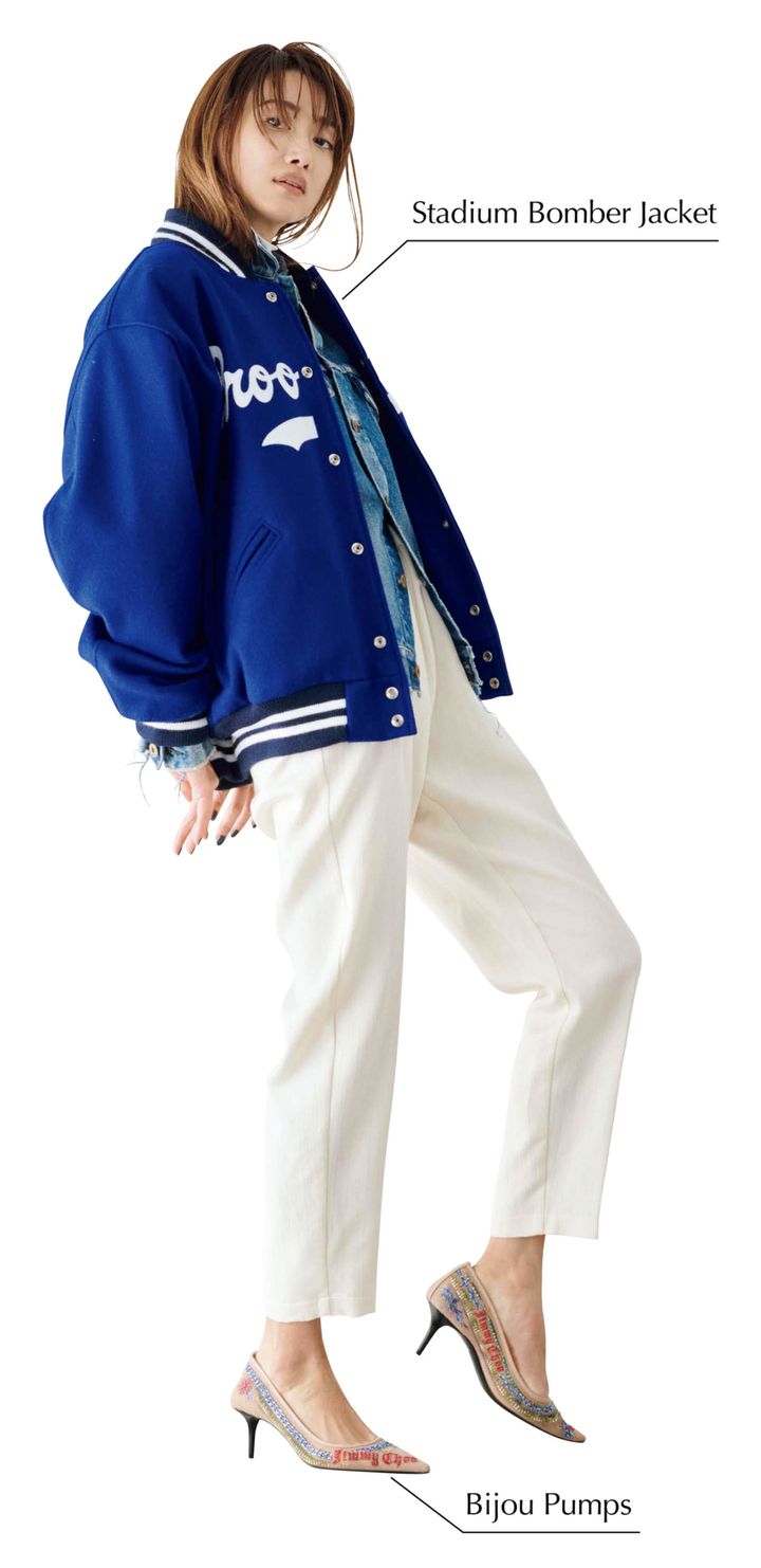 3. 大人はスタジャンにビジューパンプスで冒険。加藤かすみが提案する脱・優等生な着こなしテク