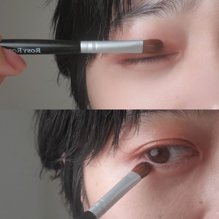 アイシャドウのグラデーションした境目をワイパーみたいになでるようにするときれいになじみます