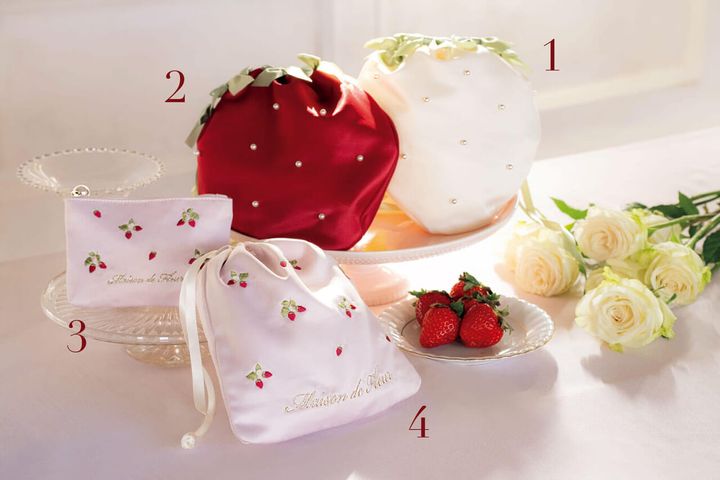いちご巾着 各¥4,200[※アイボリーはEC限定カラー]/メゾン ド フルール