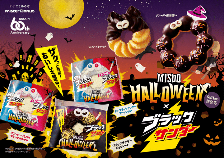 “ザクっと登場!おいしさ感電級!”をテーマに、魔法使い、猫、モンスターなどが、ミスタードーナツの人気ドーナツに変身♪ 「MISDO HALLOWEEN×ブラックサンダー」全5種を実食しました。