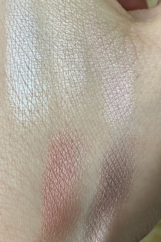 スウォッチはこんな感じです。左上のピンクはこんな感じで薄く塗るとハイライトにもう使えるような繊細さでかわいい♡