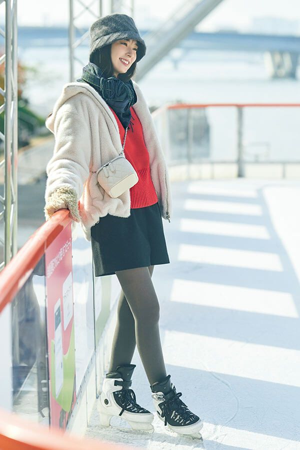 スケート靴とバランス◎のミニスタイルで彼とスケートデート