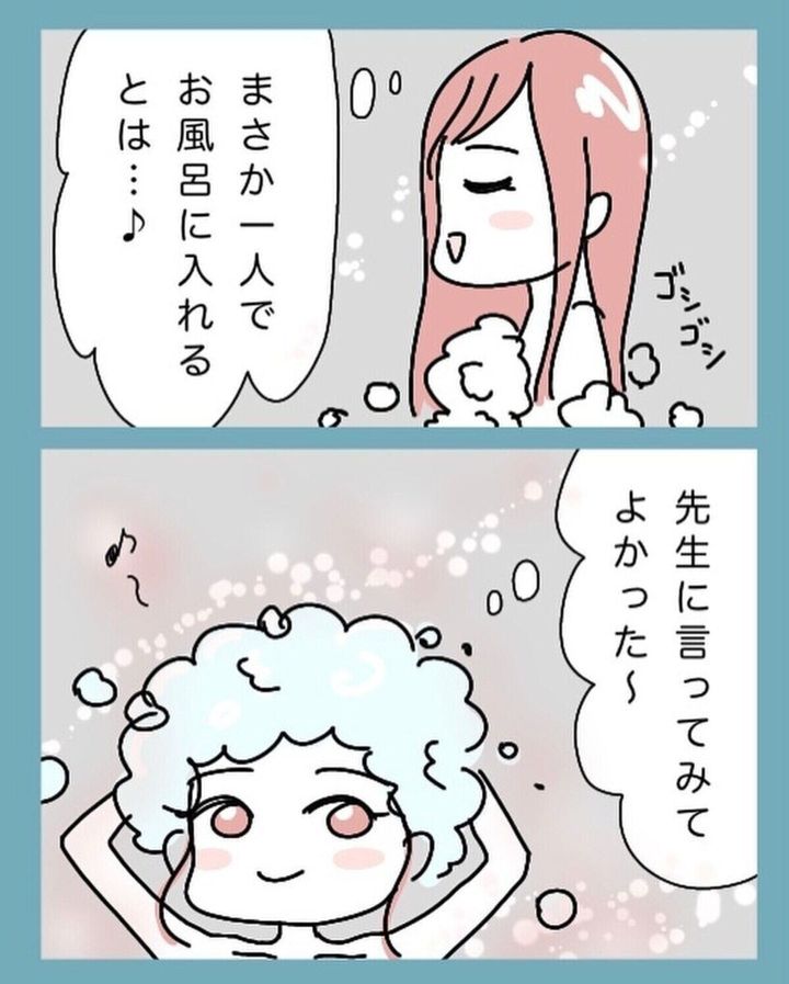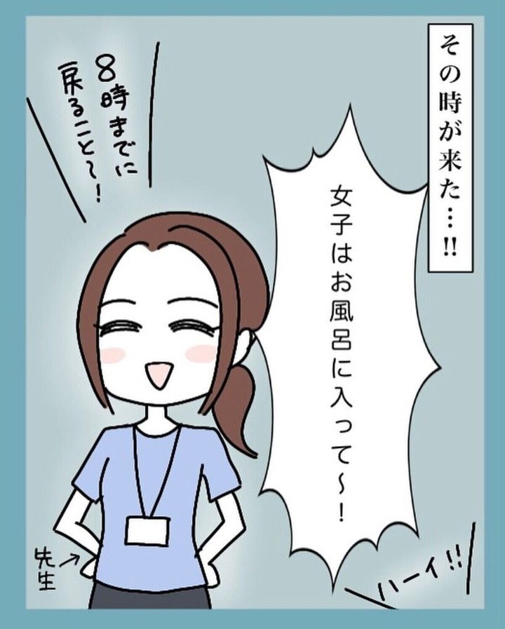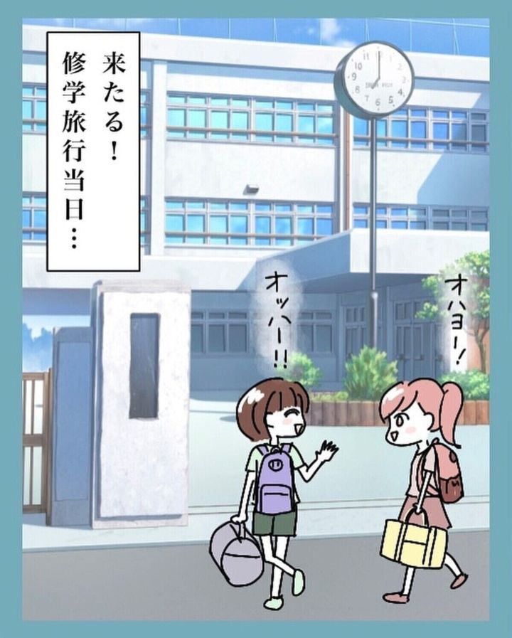 修学旅行当日、楽しい時間を過ごしたみぃこさん。ついに悩みの種だったお風呂の時間になりますが、みぃこさんはみんなと入るのではなく、なんと1人で悠々とお風呂に入ることができたようです。どうやら「生理が来た」とうそをついてしまったそう。