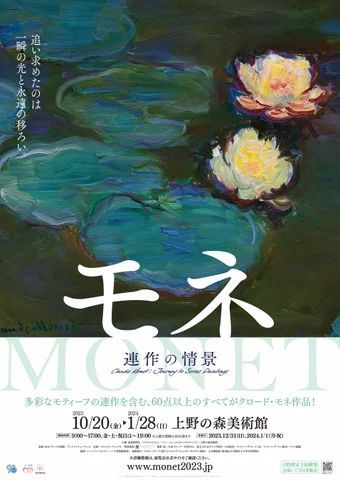 上野の森美術館では2023年10月20日(金)~2024年1月28日(日)の期間で「モネ展」が開催されています。柔らかい色使いとあたたかい光の表現で知られる印象派の巨匠、クロード・モネ(1840-1926年)の作品の同じ場所やテーマに注目し、異なる天候、異なる時間、異なる季節を通して描いた「連作」として発表しています