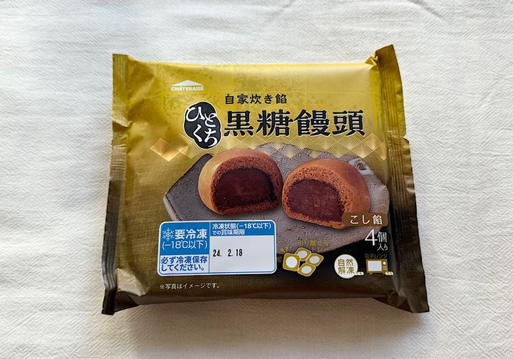 まず紹介するのは、和菓子好きにオススメしたい「自家炊き餡ひとくち黒糖饅頭」。電子レンジで1個20秒ほどチン、または2時間半程度の自然解凍をすることで、柔らかな黒糖饅頭を手軽に楽しむことができます。