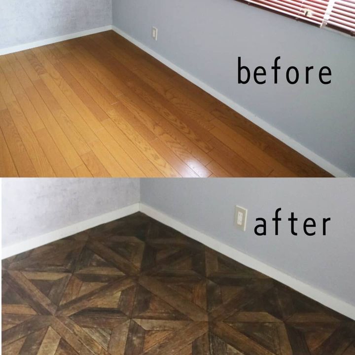フローリングの床が、好みの床に変身しました。接着剤を乾かす時間が必要になるため、作業は1日がかりになりますが、完成したときの達成感がありますよ。