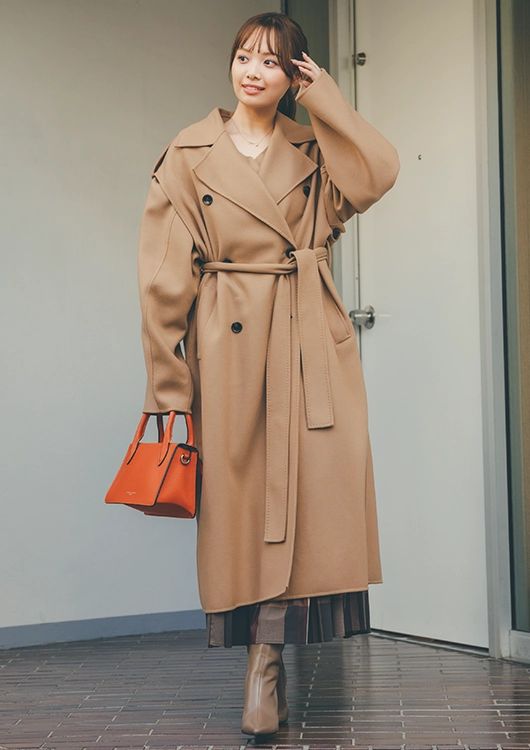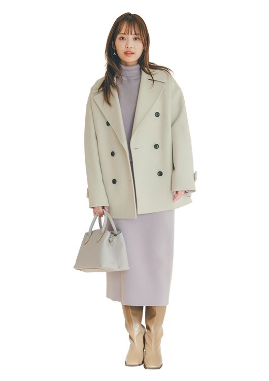 ピーコート¥42,900/FRAY I.D(FRAY I.D ルミネ新宿2店) ニットセットアップ¥18,920/ミラオーウェン ルミネ新宿2店 イヤリング¥15,400/LOHME バッグ¥12,100/ペルケ(アンビリオン) ブーツ¥27,500/ダニエラアンドジェマ