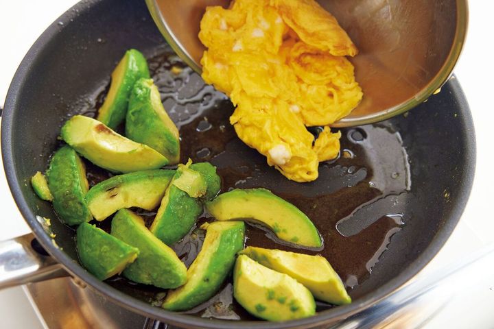 火が入ってとろっとしたアボカドに、ふんわり仕上げた卵がからむ、食感抜群のレシピです。