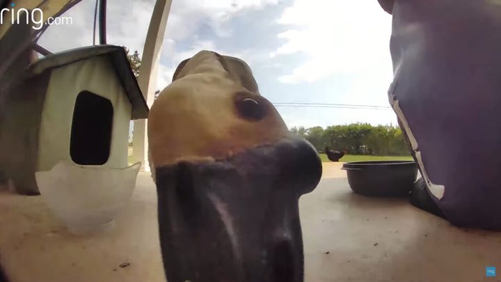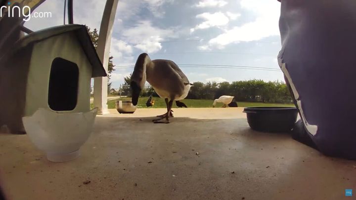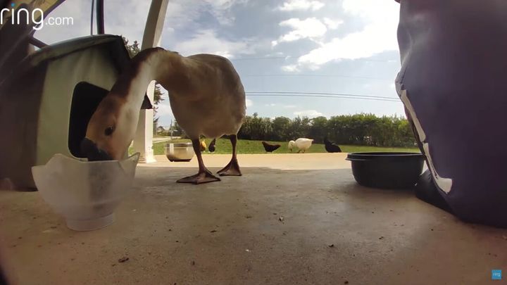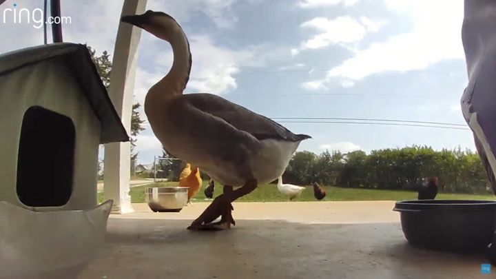 3. ごはんをもらいにお隣さん家からガチョウがやってきた!ごはんをついばんだ後、くわえようとしたものにビックリ!?