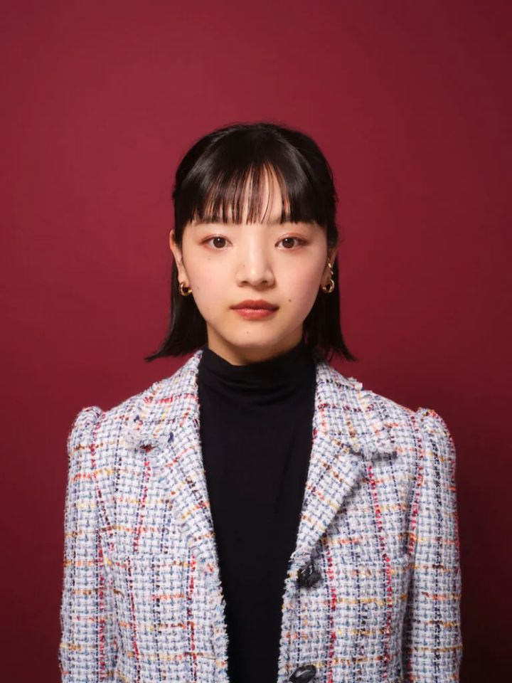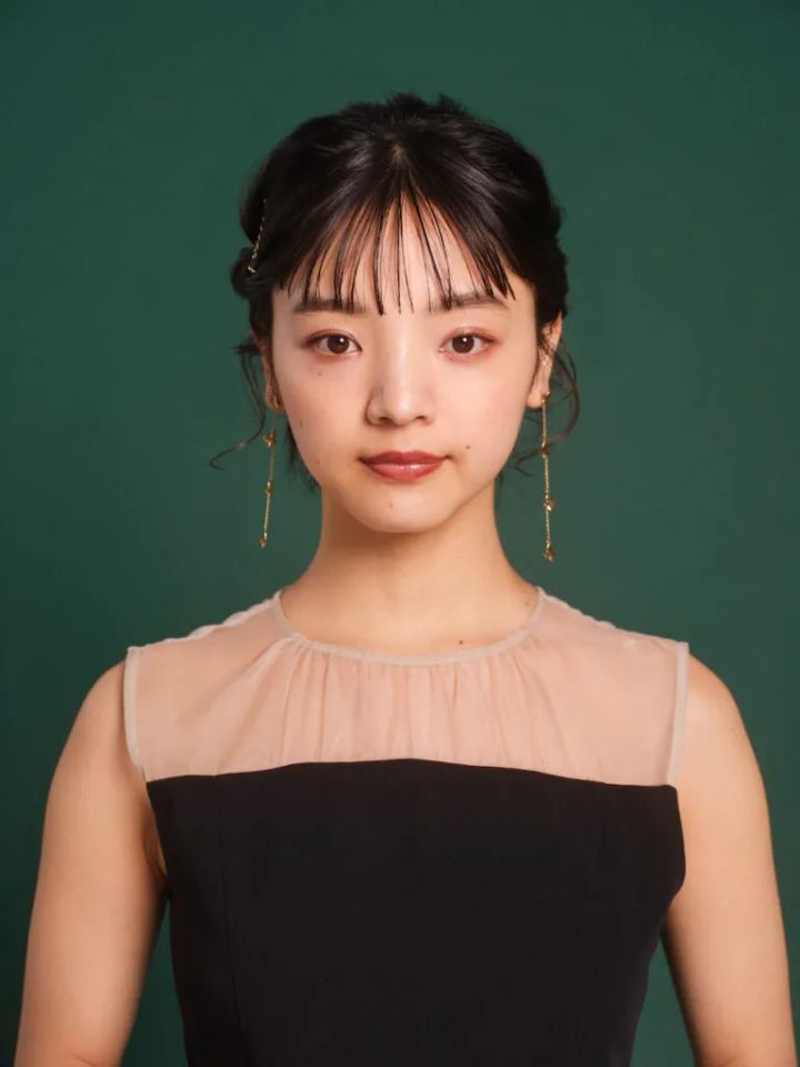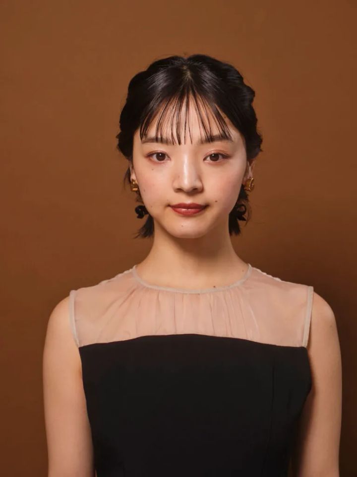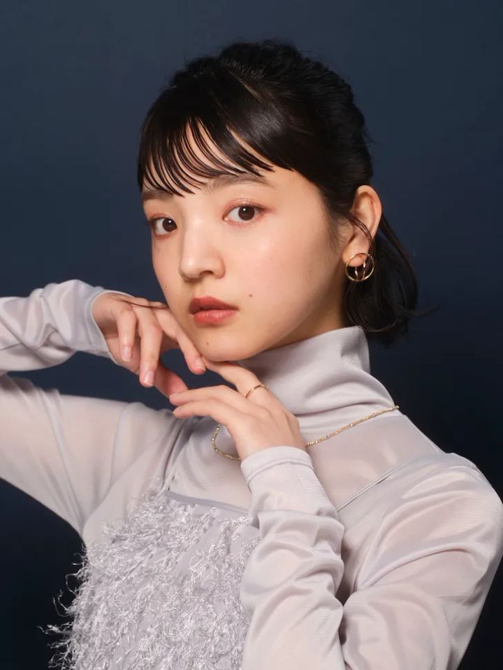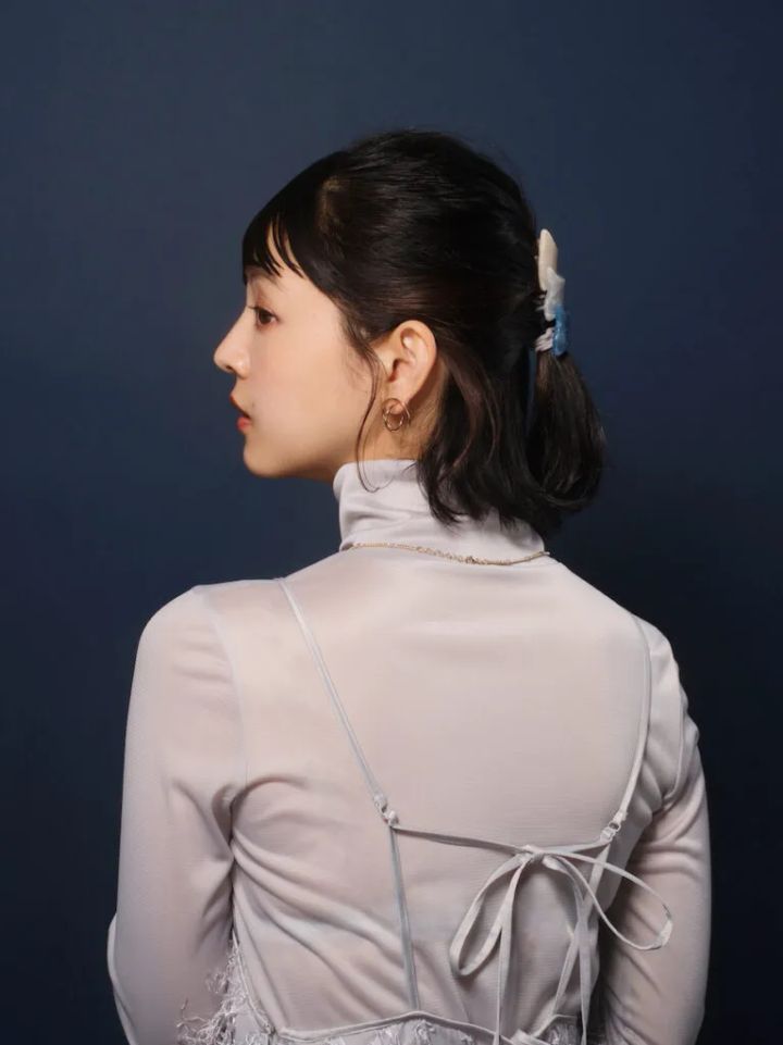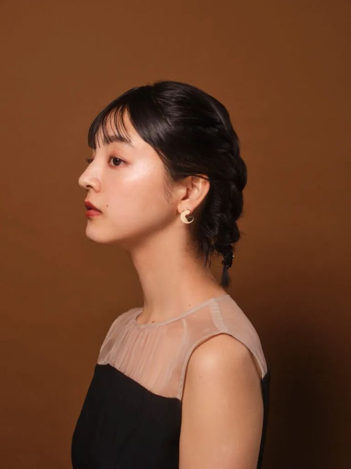 襟足が上がっているので前からはとてもスッキリ。華奢なデザインのピアスの揺れが際立ちます。前髪はシースルーに仕上げ、肌の分量を多めにして軽やかに。後れ毛はごく繊細に揺らします。