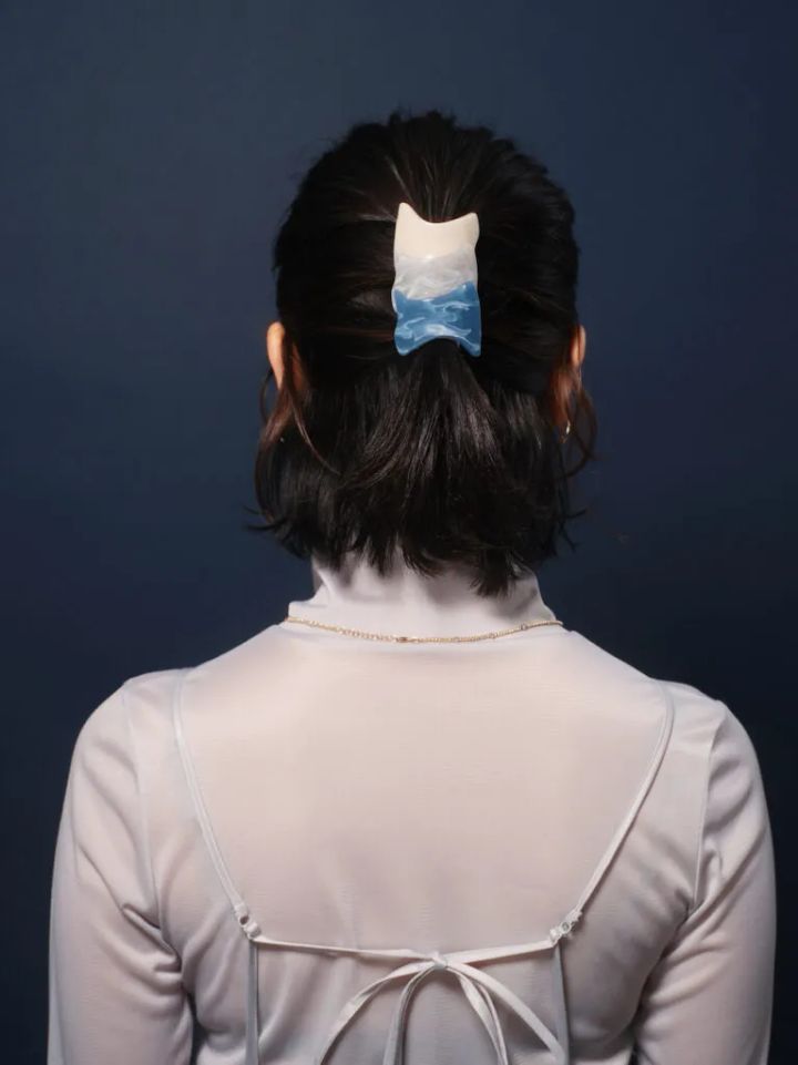 クリップを留めるのはこの位置と覚えて。サイドをキュッとタイトにねじって、やや後ろ&低めでクリップをオン。可愛いのにどこかクール…という絶妙な雰囲気が漂います。