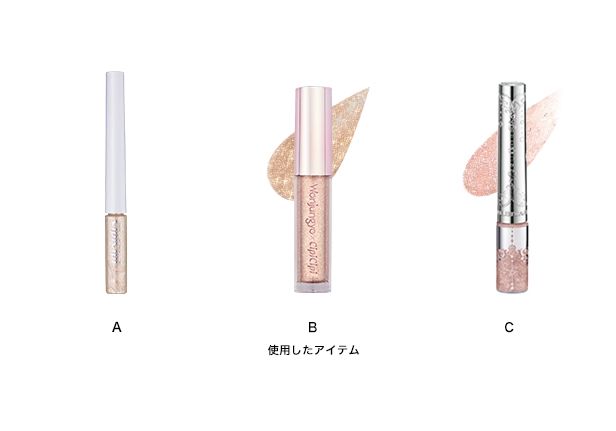 大人になっても、キラキラにキュンとする気持ちはきっと永久不滅!たまには大粒のラメを目元に3点トッピングして、日常にお遊びマインドを投入するのも楽しいはず。