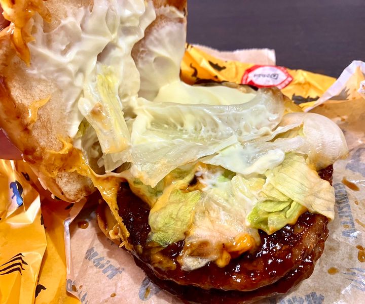 てりやきがダブルになって、甘辛いタレが口いっぱいに広がります。