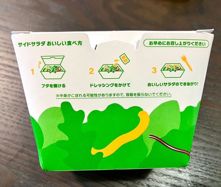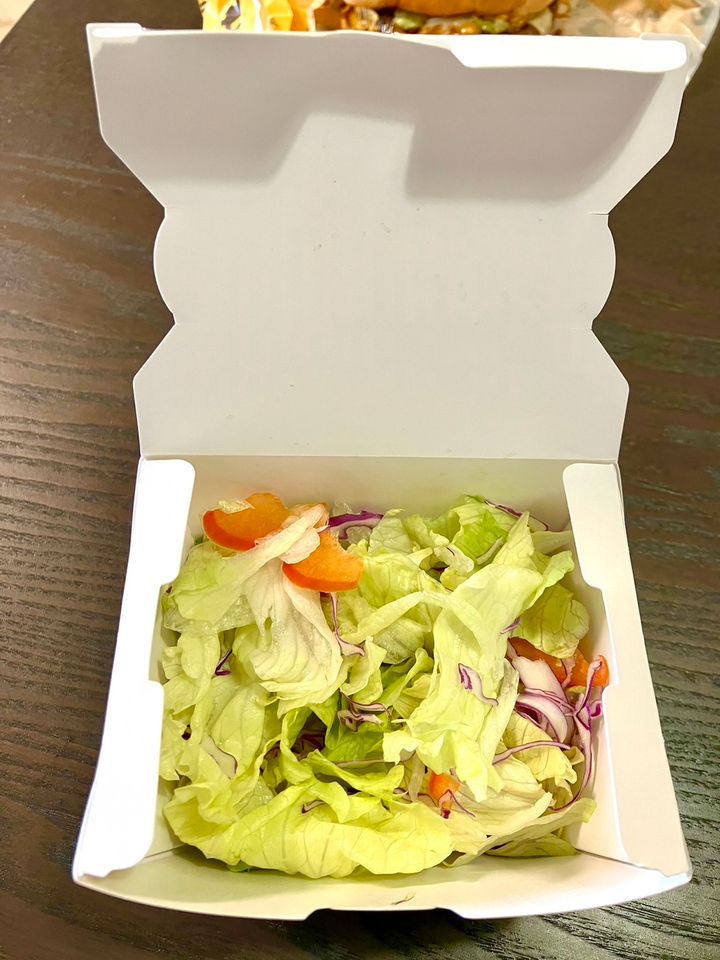 サイドサラダ。プラスチックカップから紙のパックに変わっていました!