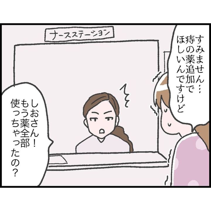 出産後の身体と心の回復には、思いのほか時間がかかることがあります。この漫画の主人公・しおさんは、無痛分娩で無事に出産したものの、産後の経過で思わぬトラブルに見舞われたそう。その後は、痔(ぢ)の痛みやメンタル低下にも悩まされ、赤ちゃんとの産後入院は過酷なものに。