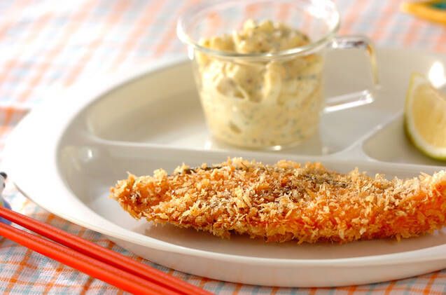 鮭の切り身で作るサクサクのフライです。自家製のタルタルソースと相性抜群です。切り身は1/2に切ってからフライにすると食べやすいのでオススメです。塩鮭以外にタラやイカなどでもアレンジできます。