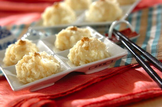 ちらし寿司と一緒に食べたい副菜は、取り分けやすいものが良いですね。ロールイカとハンペンで作るイカシューマイは甘くて美味しい。シューマイの皮を切って周りにつけてからレンジでチンするので失敗知らずで作れますよ。