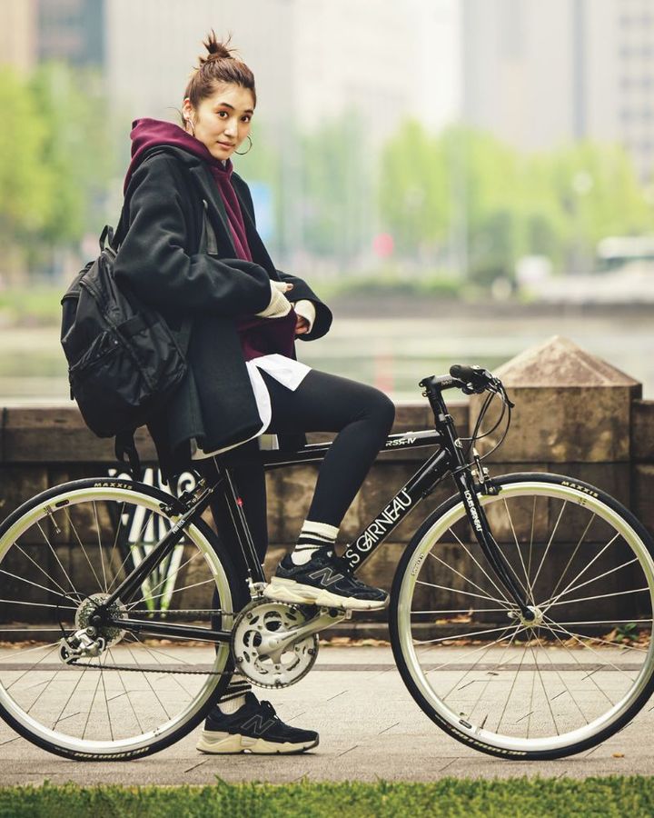 コート¥72,600シャツ¥31,900(ともにカオス/カオス丸の内)フーディ¥39,600(エイトン/エイトン青山)レギンス¥12,800(lululemon)リュック¥20,900(レスポートサック/レスポートサック ジャパン)スニーカー¥22,000(ニューバランス/ニューバランスジャパンお客様相談室)グローブ¥14,300(アソース メレ/アイネックス)ソックス¥2,750(ユクリ/TTIME)ピアス¥8,400(アビステ)