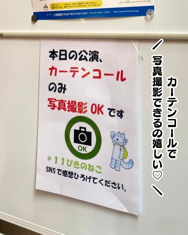 カーテンコールのみ写真撮影が可能なので、楽しい11ぴきのねこの世界を記念に残しておけるのも嬉しいポイントです。