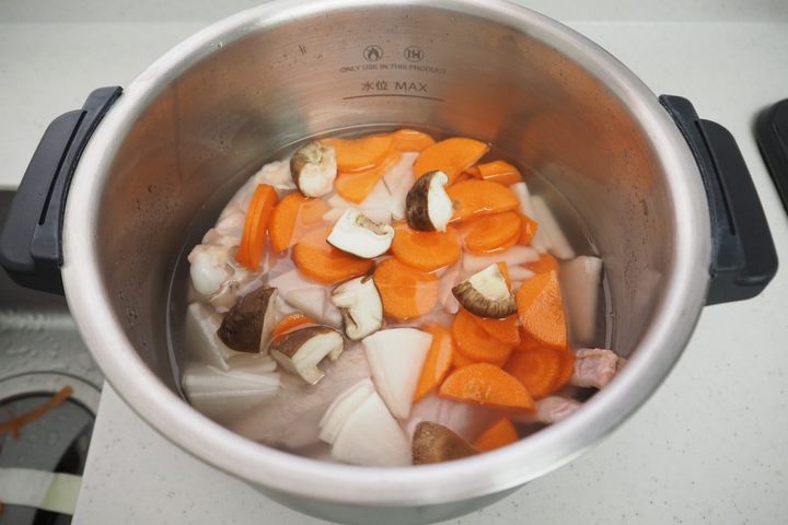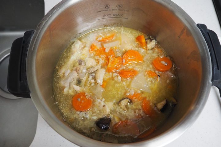 わが家では、参鶏湯(サムゲタン)風スープを電気調理鍋(ホットクック)で作っていますので、今回はホットクックでの作り方をご紹介します(もちろん普通の鍋で煮込んでも作れます!)。
