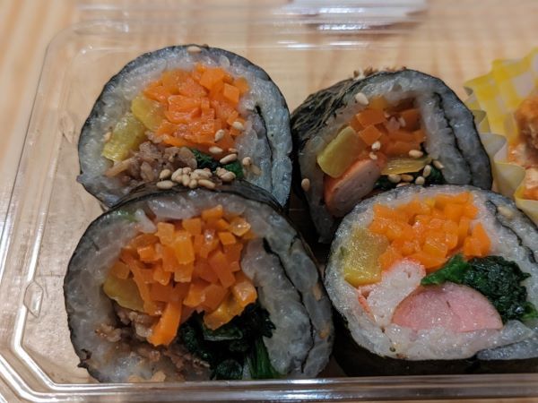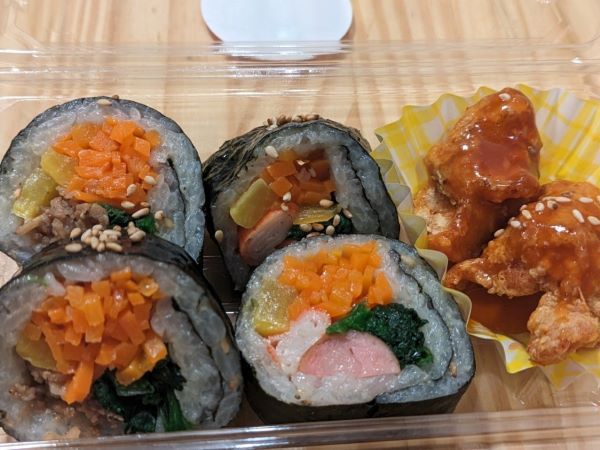今回は「オリジナルキンパ」「牛カルビキンパ」「ヤンニョムチキン」をいただきました。