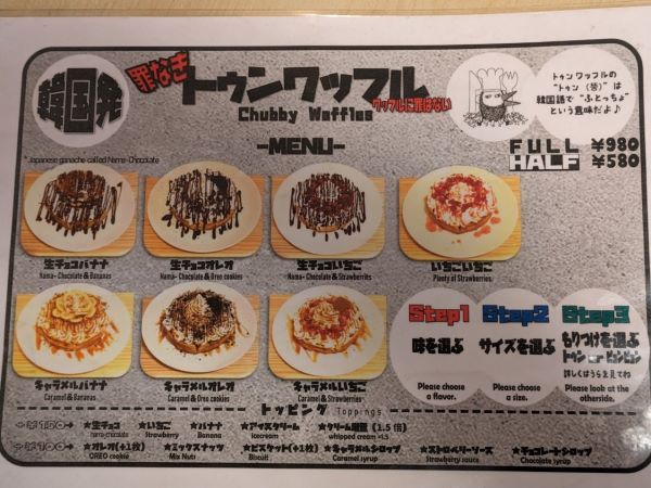 ならばと、韓国風のご飯もの「キンパ」の販売も始め、6種類のキンパが楽しむことができます。オリジナルキンパを筆頭に、チーズ&ウインナー、明太マヨキンパ、牛カルビキンパとメニューは幅広く、色鮮やかな野菜が入っているのが特徴です。 お肉にご飯ときたら、デザートという流れになりますよね♪こちらは韓国で大流行りのスイーツ「トゥンワッフル」。ふわふわのワッフルの生地とたっぷりのクリームで作っていて、ボリューム満点なのが特徴です。