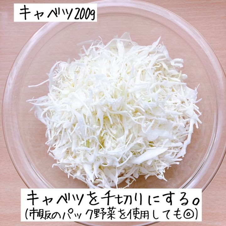 キャベツを千切りにする。市販のパックを使ってもOK。