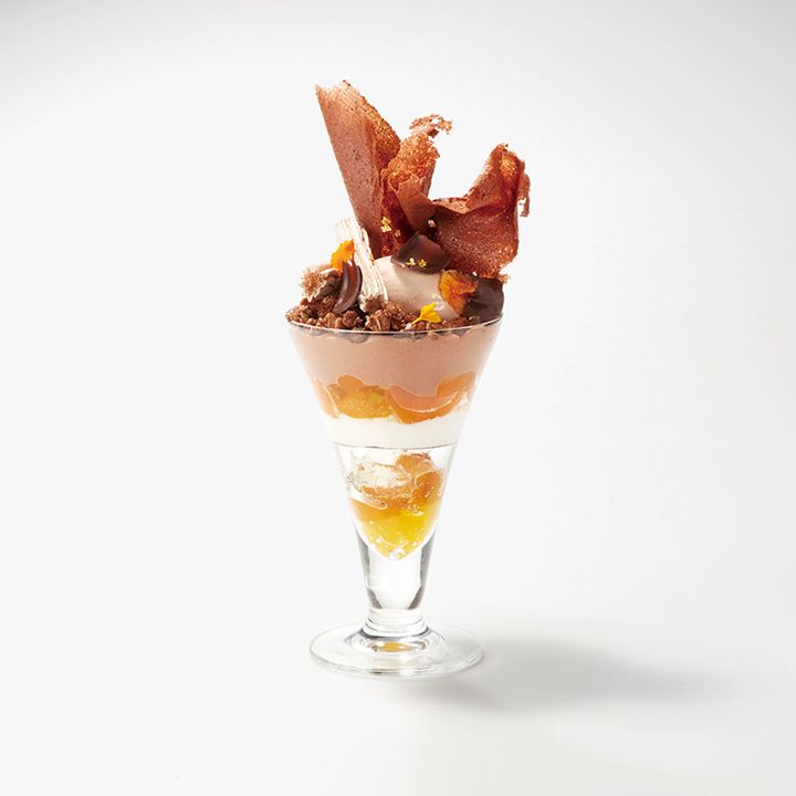 2024年に代官山に新店舗をオープン予定の大注目のスイーツブランドは、素材の美味しさと印象的な味が魅力。サロショでいただけるのは、柑橘とショコラのパフェ。エクアドル産カカオ“アチェ52%”と日本の柑橘のマリアージュはもちろん、多彩な食感を楽しんで。クープショコラ「アグリューム&フィザリス」(1人前)¥3,960