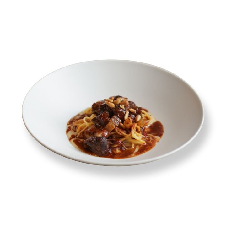 元々チョコレートを使う、ローマの代表的な郷土料理、牛テールの煮込みをウガンダ産・ガーナ産のカカオニブが香る濃厚な白ワインソースと合わせて手打ちパスタに絡めた一皿。それぞれの素材が織りなす奥深い味わいに思わず唸るはず。コーダ・アッラ・ヴァッチナーラと白ワインとカカオのソース〜手打ちの細麺のマッケロンチーニ〜(1皿)¥2,860