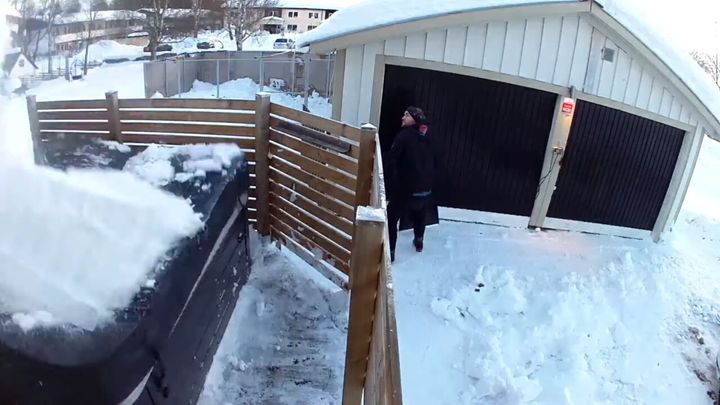 それは、スウェーデンのとあるお宅でのこと。 男性が敷地内を雪かきしています。