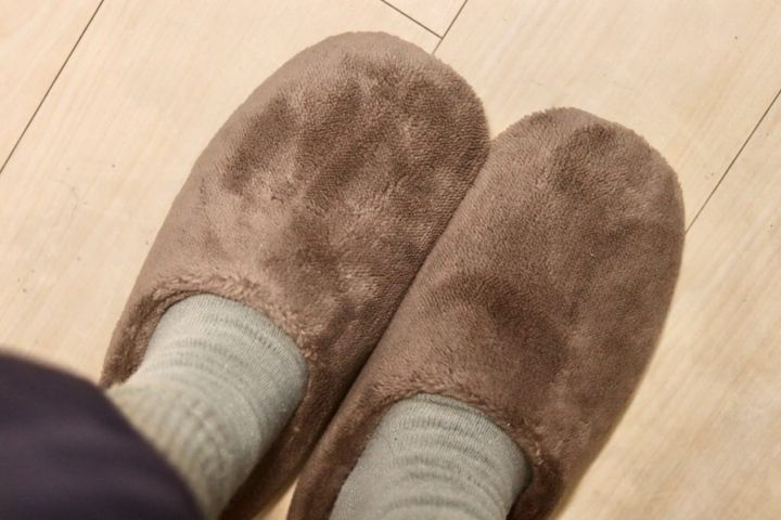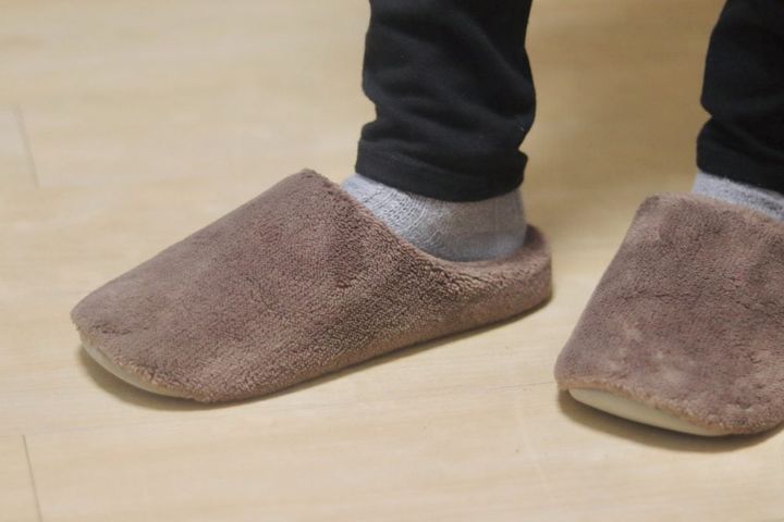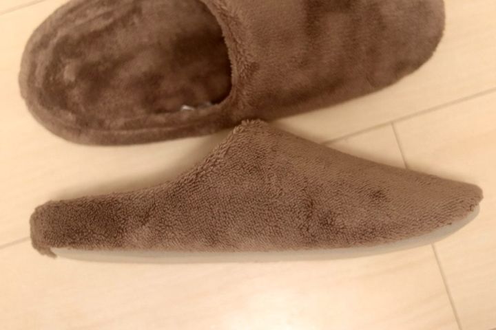 個人的にこの脱ぎ履きしやすい王道スリッパが好きです。足首まですっぽり隠れるブーツタイプのルームシューズも試したことがあり、確かに暖かいんですが、同時に“ムレ”が気になったんですよね。履くのも一手間だったり、温度の調節がしにくかったんです。