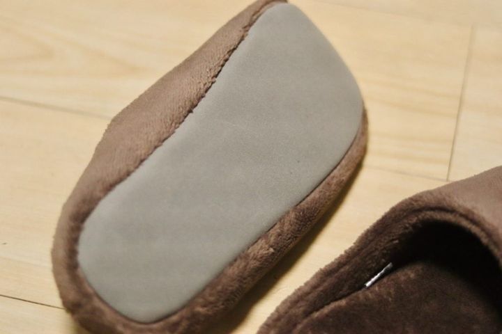 これも実際に履いてみて初めて分かったのですが、底面はすべり止め加工がされていて、歩くときにピタッと止まる感覚があります。急いでいるとどうしても小走りになりがちで、過去に他のスリッパを履いたときには脱げたり、滑ったりすることもありました。やっぱり、底にすべり止めがあるのとないのとでは、履き心地に大きな差がありますね。