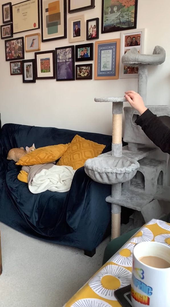 キャットタワーに向かってジャンプした子猫。 その時の様子は、こちらの動画からご覧いただけます!