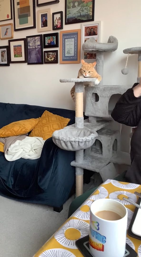 3. キャットタワーに向かって子猫が元気にジャンプ!高さが足りないと思いきや・・狙い通り??【海外・動画】