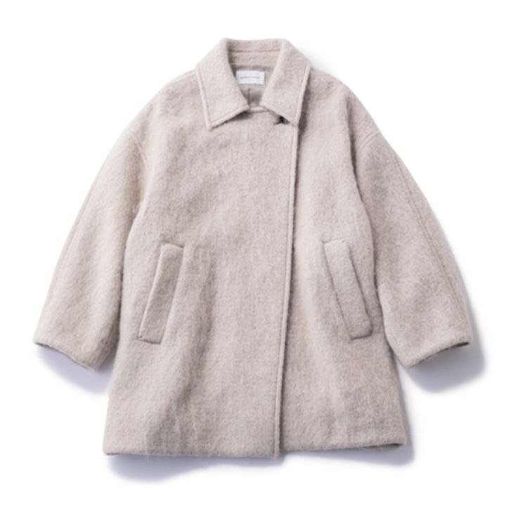 ふわふわのモヘアシャギーとまろやかなベージュで大人の可愛げを演出。コート¥47,300(アダム エ ロぺ)