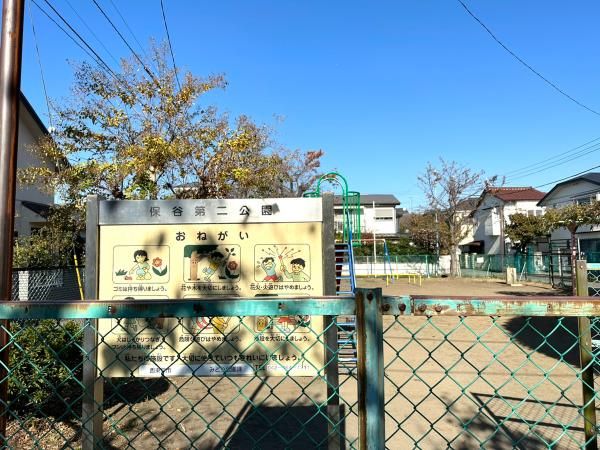 西武柳沢駅北口から新青梅街道に向かう途中にある保谷第二公園。民家だけでなく、居酒屋さんやスイーツ店が点在するエリアです。