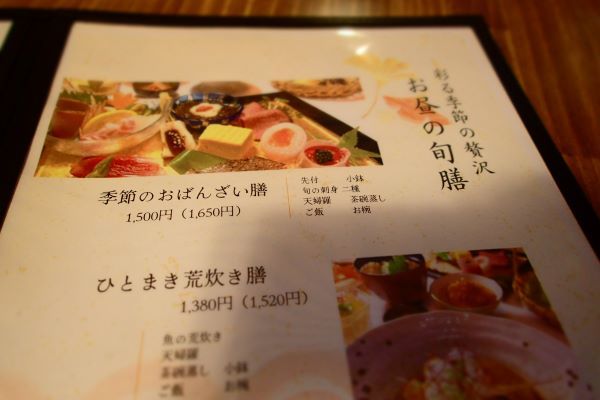 お昼の旬膳 季節のおばんざい膳 1650円 ひとまき荒炊き膳 1520円 握りずし膳 1980円