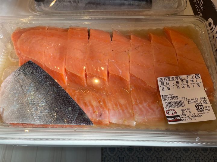 ひとつめは…「銀鮭」です。いつもは通常の銀鮭を購入していましたが、今回は新商品の銀鮭(柚子香味)を初めて購入してみました。柚子のさわやかな香りが食欲をそそります。