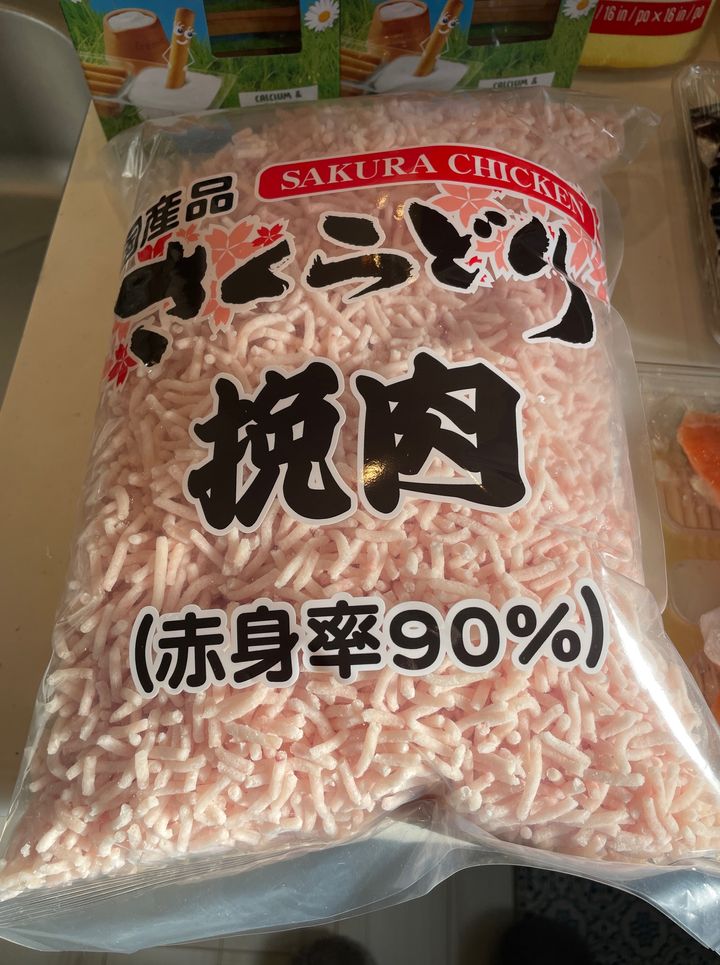 みっつめは…「さくらどり挽肉」です。こちらなんと2kgも入っている大容量。パラパラな挽肉であらゆる料理に使いやすくて気に入っています。コストコから自宅に帰るまでの間に少し解凍されてしまうのが難点ですが…できる限り早いタイミングで冷凍保存すればパラパラなまま料理に使うことができます。