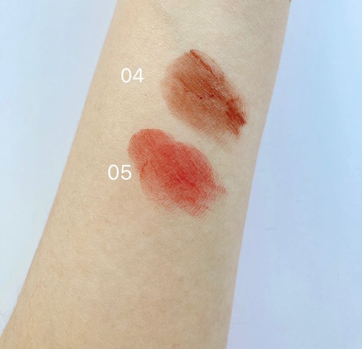 04 チョコミルクは大人向けのブラウンで、万能洒落カラー。05 フィグピューレは赤みのある上品なローズカラー。顔色をパッと明るくしてくれます。