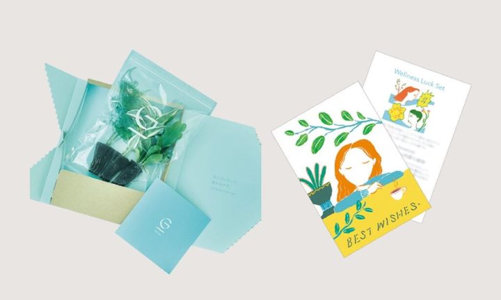 初心者さんなら、土を使わず、パフカルというスポンジごと器に入れて水を注ぐだけの観葉植物「&Green」で楽しんでみては? 好みの植物3種を組み合わせる「Custom Set」の他、佐藤ただすけさんが監修した、仕事運・恋愛運・健康運から選べる、その運をアゲる植物3種とメッセージカードが届く「Good Luck Greens Set」(数量限定)もあり。各¥3,520 ※送料別(&Green)