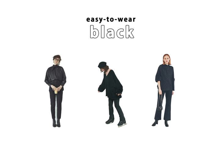 カジュアル感ときちんと感の両立、装いに落ち着いた印象をもたらす、などメリットづくめの黒デニム。ふつうの黒パンツでは、のっぺりしてしまう「全身黒」でも奥行感やメリハリが出るのもポイント。重量感のあるニットとワントーンでまとめても変化につながる抜けが生まれて、やさしく穏やかなイメージへと好転。
