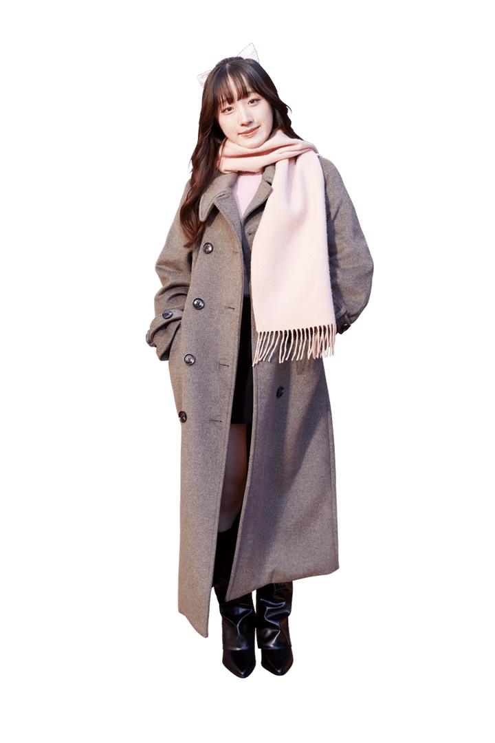 「チェスターコートはMURUAで20,000円くらいで、自分のパーソナルカラーにあったカラーときゃしゃに見えるシルエットがお気に入りです。