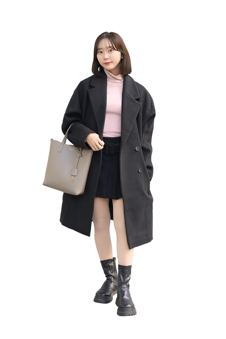 ロングコートはhotpingで10,000円くらい。きれいな形でお気に入り。リボン型のネックレスも韓国のアクセサリーショップnyunyuでゲットしました」