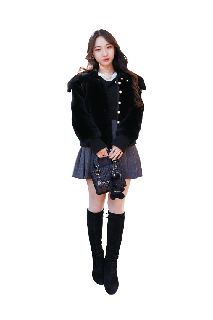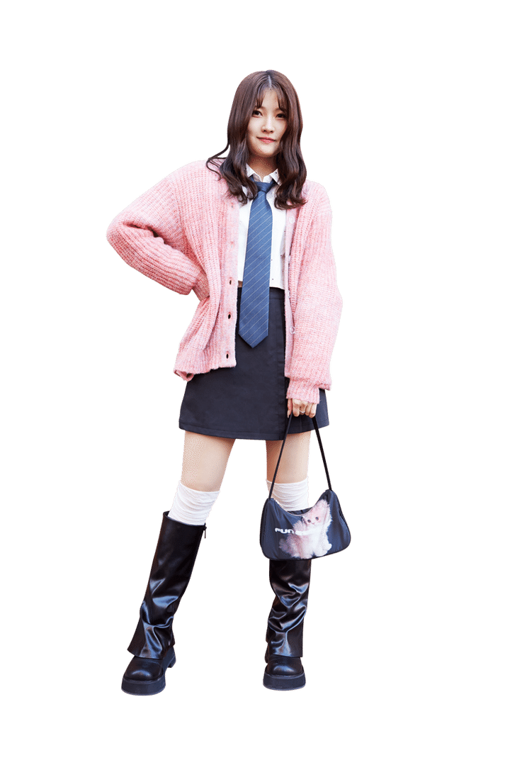 「チャールズ&キースで17,000円くらいだった太めブーツでY2Kを意識しつつ、明洞で買ったミニスカートやネクタイでプレッピーをMIXして流行りのスクールガールをめざしました。