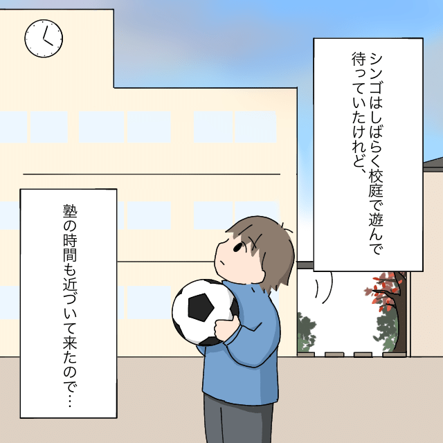 しばらく校庭で遊んで待っていたシンゴくんは、塾の時間が近づいてきたので、
