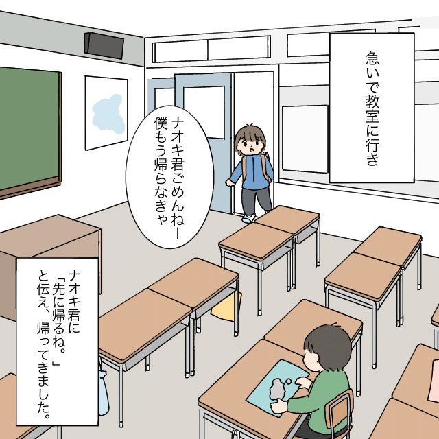 また別の日、授業で作った工作が完成していないので、先生に残って仕上げていくようにと言われたナオキくんは・・