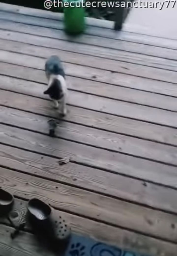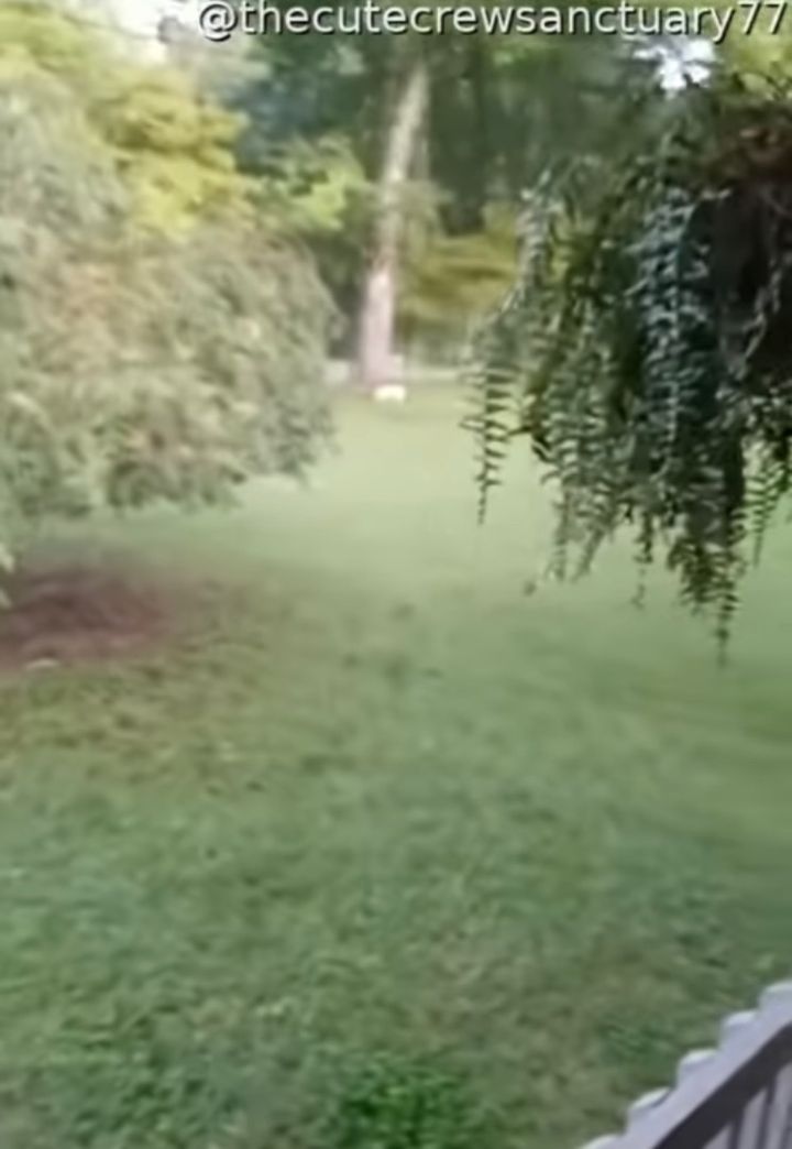 アメリカ・ジョージア州で撮影されたこの動画は、愛猫に呼ばれた飼い主さんが外へ出るシーンから始まります。