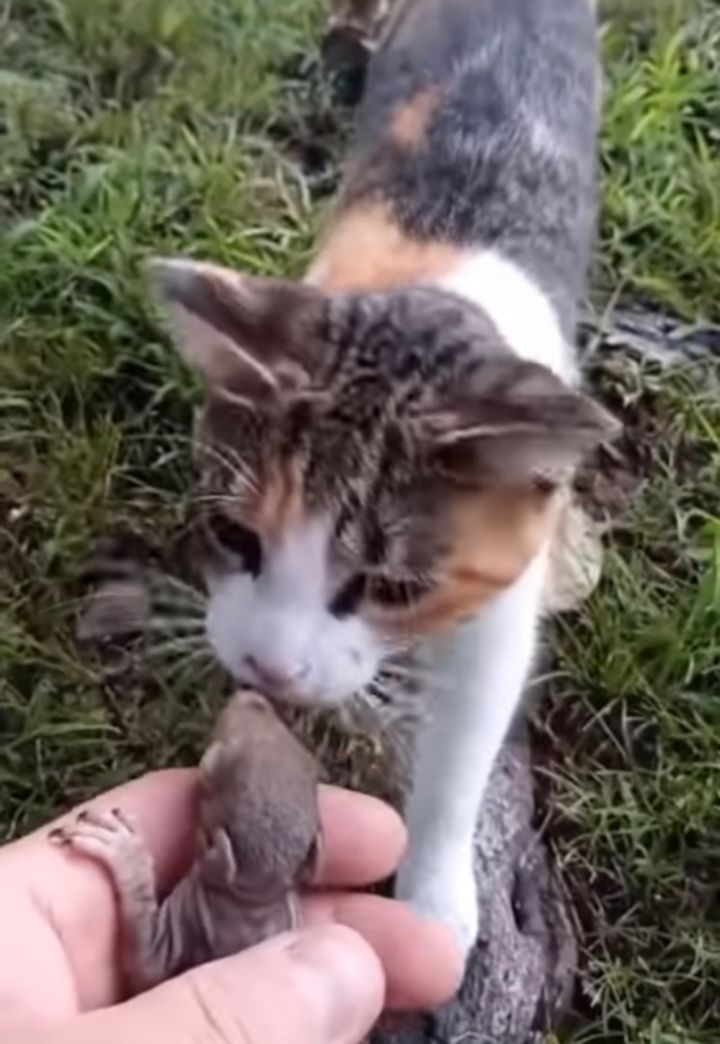 愛猫「パイパー」に呼ばれて向かった先でリスの赤ちゃんを発見した飼い主さん。