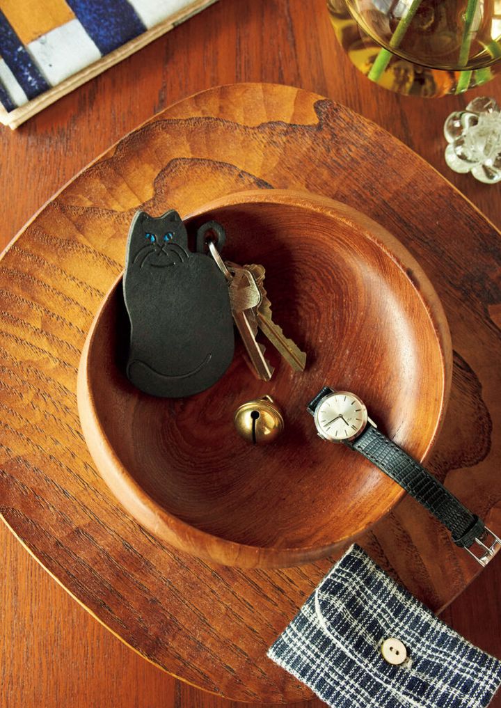 ハンドメイドのバッグや小物など、つくりのいいレザーアイテムを岡山・倉敷で製作している〈ダブ&オリーブ〉。新作に猫のチャームを見つけて、その愛らしさに思わず購入してしまった。聞けば、映画『魔女の宅急便』に登場するキキのショルダーバッグをモデルに「キキバッグ」を製作していて、それにジジを付けたいと思い立ち黒猫のチャームも作ったそう。バッグに付けて両方の経年変化を楽しんだり、キーホルダーにして肌身離さず持ち歩くのもいい。¥3,900(ダブ&オリーブ 090−2005−2826)その他スタイリスト私物